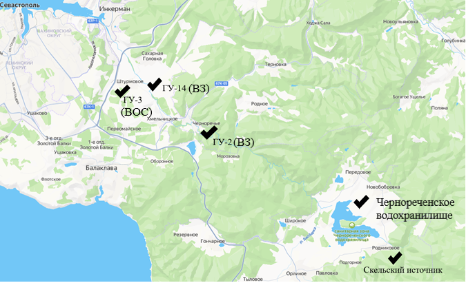 Рис. 1. Схема размещения водопроводных сооружений города Севастополя