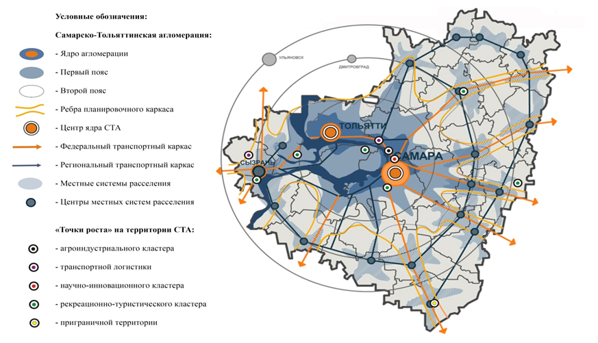 - Постепенное освоение нового фронтира развития ключевых кластеров региона от Самарско-Тольяттинской агломерации к периферийным районам области.