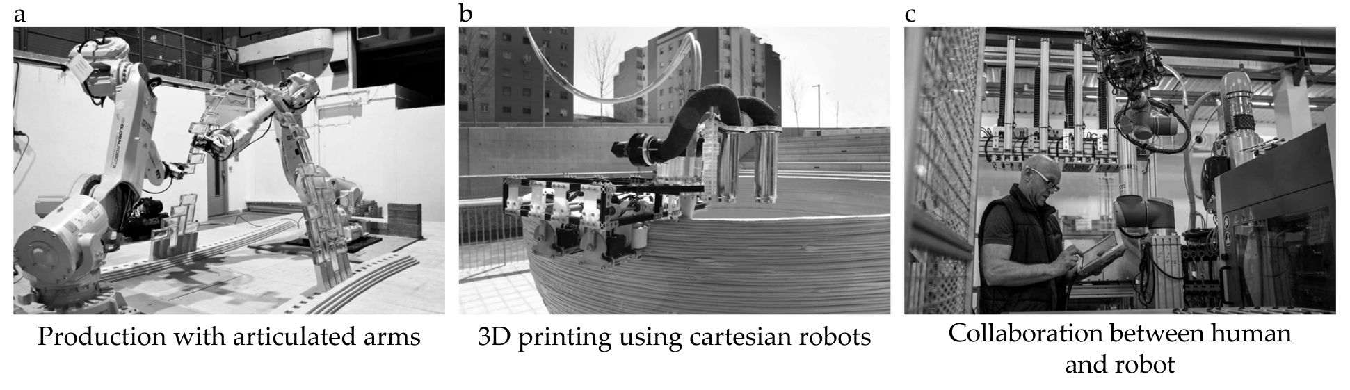 Collaboration between human and robot; Collaborative robots, also known as cobots, are high-tech mechanisms that can work not instead of a person, but together with him and perform tasks that would be too difficult for a person or a robot separately. Persistent labor shortages are a reality in the construction industry, and cobots could be an effective solution to this problem and one day replace humans by taking on unskilled jobs (Pic. 1c) [12, 13, 14].