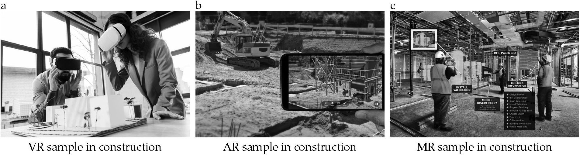 Fig. 5. VR, AR and MR samples in construction