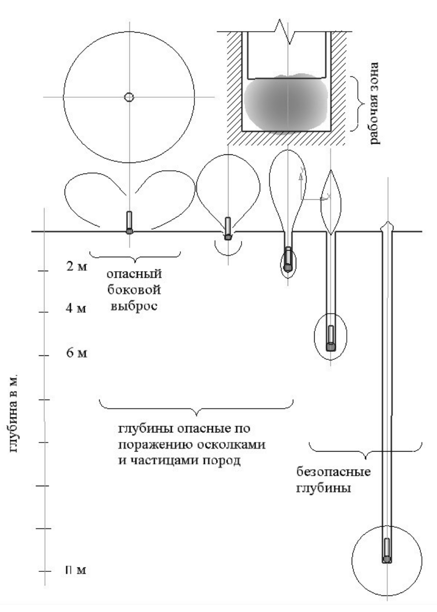 Рекомендации по технике безопасности. Для обеспечения условий по технике безопасности рекомендуется применять изделия, начиная с глубины не менее двух метров, во избежание поражения человека возможными вылетевшими осколками, форсом газового выхлопа с мелкой дисперсией пород (рис. 6).