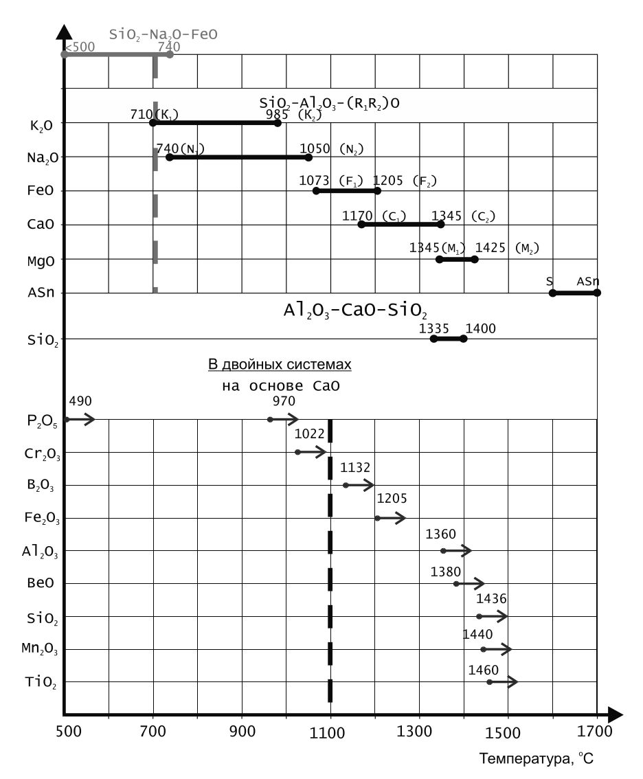 Рис. 1. Температуры и последовательность образования легкоплавких эвтетик
