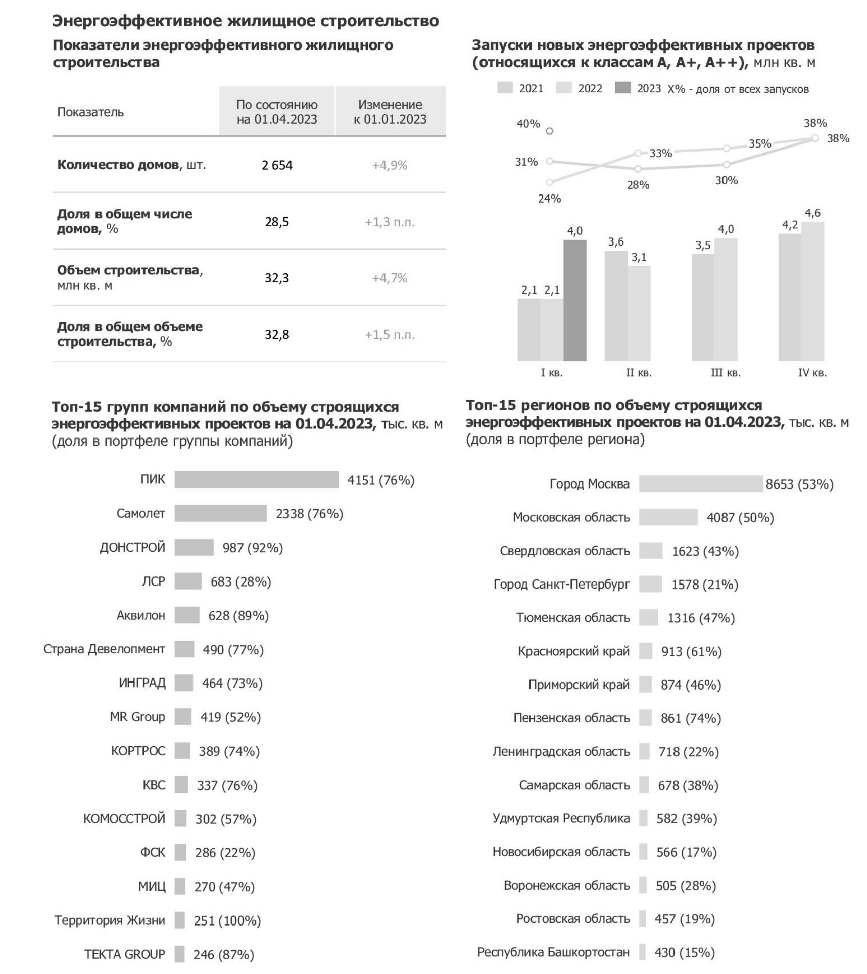 По оценке финансового института развития в жилищной сфере «ДОМ.РФ» [11] показатели энергоэффективного строительства в 2023 году представлены на рис. 1.