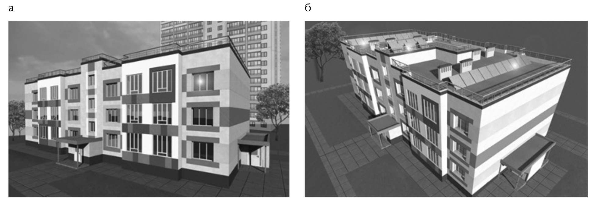 Рис. 2. Энергоэффективный дом. Визуализация: а – вид 1; б – вид 2