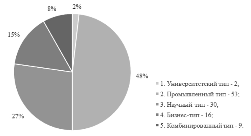 Рис. 4. Типы технопарков в зависимости от базовой структуры
