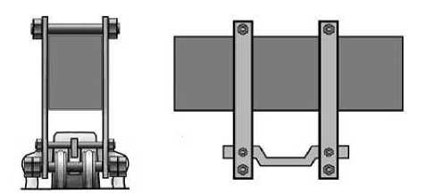 Сам хомут – это скоба, обычно из стальной полосы, позволяющая соединять крепежные элементы колокола (так называемые «парные уши») и балку с двух сторон. С целью предупреждения раскачивания колокола и обеспечения большей жёсткости допускают дополнительное применение стального уголка.