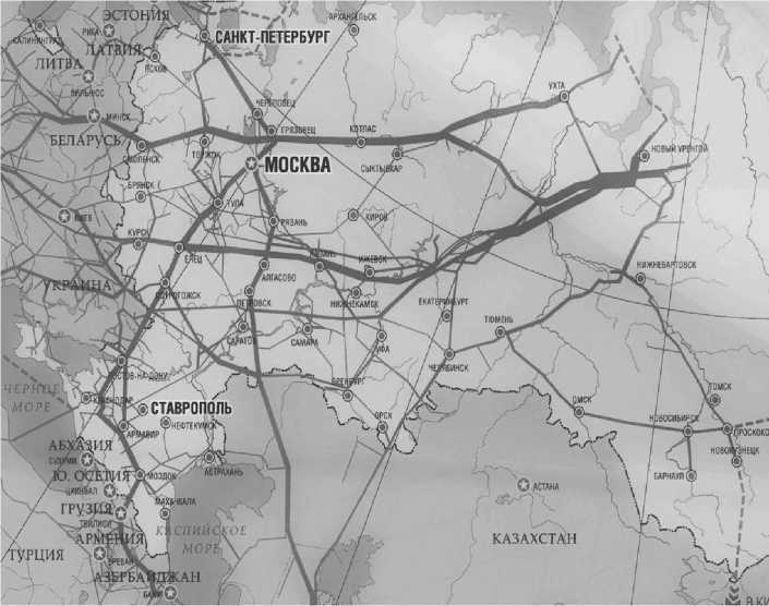 Заводов по переработке газа и конденсата на территории Российской Федерации всего 6, а подземных газовых хранилищ – 23, что повышает возможность локализации опасных воздействий и их своевременного предупреждения, а компрессорных станций в разы больше – 254. Самым рассредоточенным объектом является магистральный трубопровод: он соединяет крупные, средние и маленькие населенные пункты (рис.2), транспортирует газ через территории каждого региона и области. Именно на нем чаще всего и происходят аварийные ситуации.