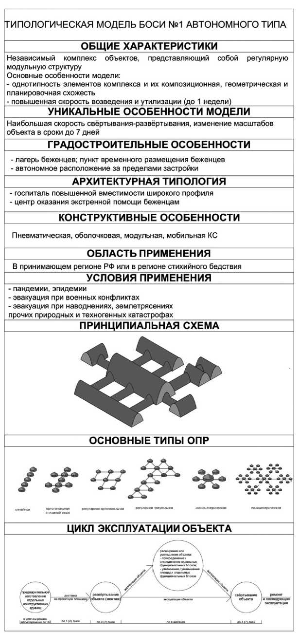 4.1. При эвакуации и госпитализации населения в условиях пандемий, эпидемий, военных конфликтов, а также землетрясений и наводнений применяется типологическая модель БОСИ автономного типа (рис. 2).