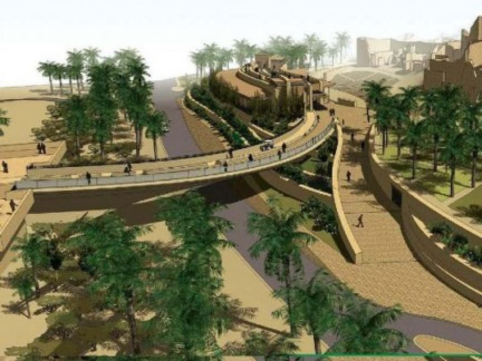 Включает в себя работы по внешней координации общественных мест и мощению дорог и коридоров в Тураифе, а также работы по освещению, санузлам, туалетам и остановкам внутреннего транспорта для туристических туров. Сюда также входит мост шейха Мохаммеда бин Абдель Ваххаба [13], который ведет к въезду на дорогу от Фонда шейха Балбуджаири (рис. 9). Это новый и современный мост, при проектировании которого учитывались функциональность, эстетика и углы обзора.