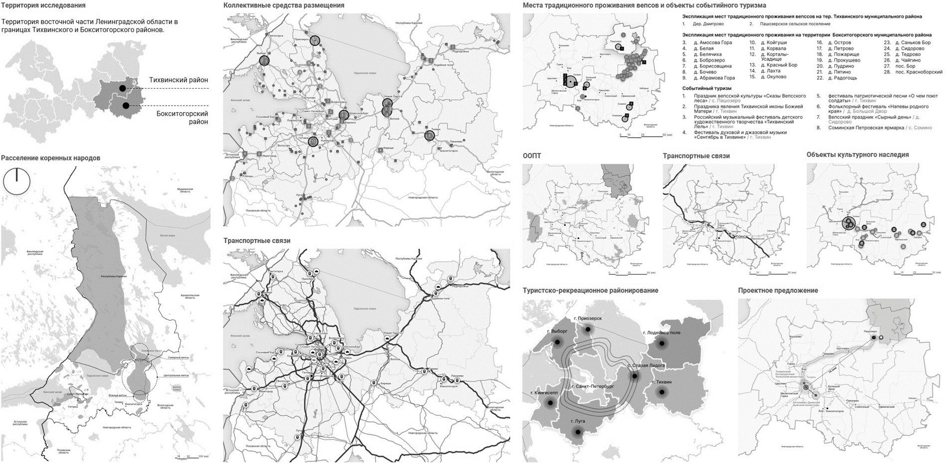 Отдельно было проведено исследование по Тихвинскому и Бокситогорскому районам по критериям удаленности, наличия особо охраняемых природных территорий, водных артерий и исторической принадлежности территорий к вепсскому народу.