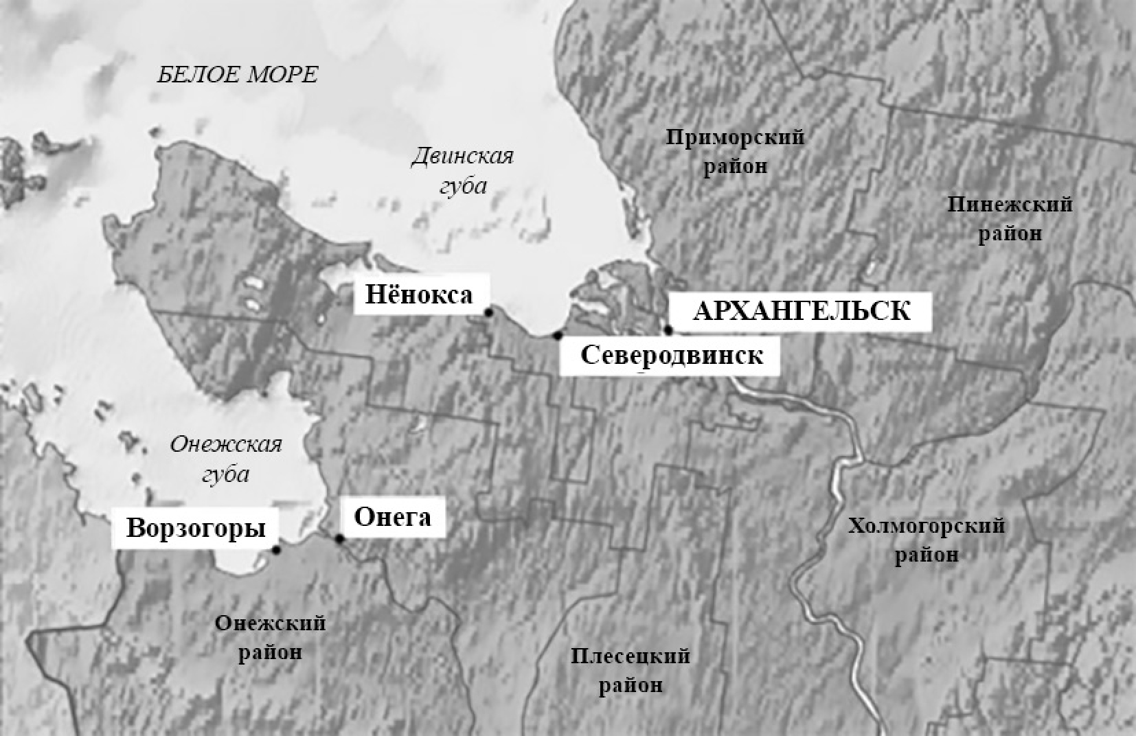 Fig. 1. Location of the Nenoksa and Vorzogory villages and the nearest municipal centers