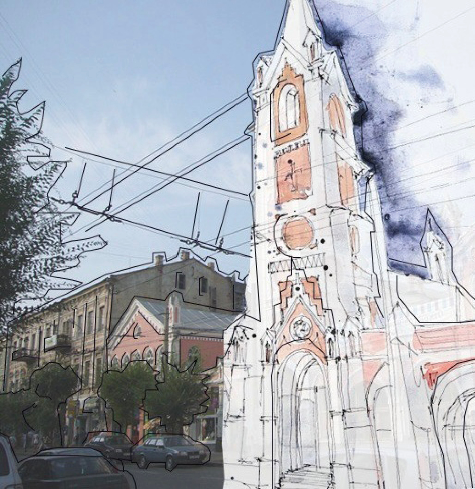Fig. 11. Church Collage of drawing and photograph of the image object. Work of a 2nd year student A. Dulevich