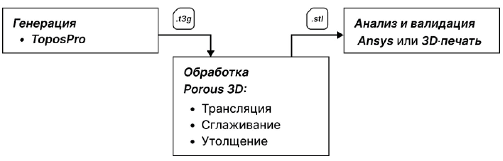 Рис. 2. Разработанный метод для моделирования пористых материалов, впервые реализованный в работе [11]