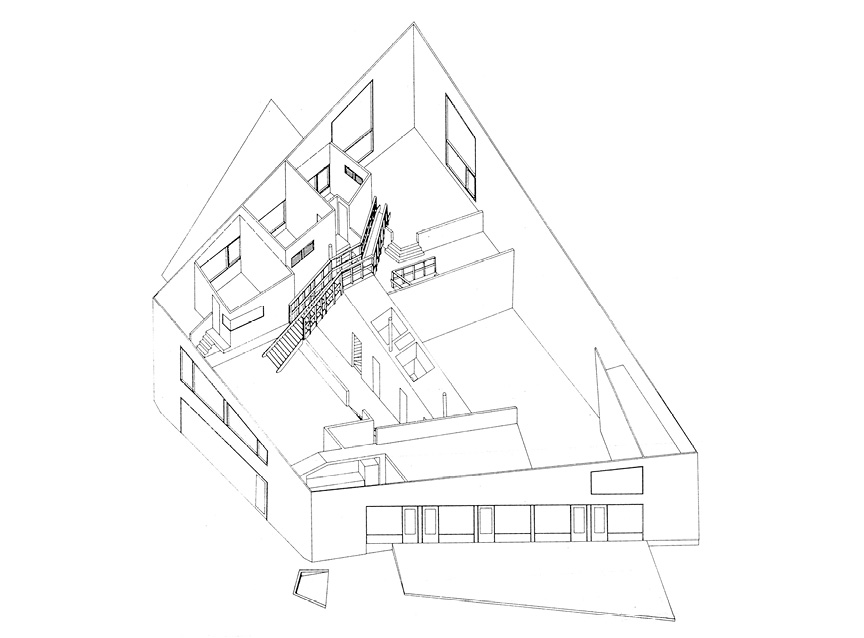 Он купил розовое колониальное бунгало, построенное в 1920-х гг., и не стал сносить старый дом, чтобы построить новый объект. Бунгало стало основой для гигантской архитектурной инсталляции – ее композиционным центром. С трех сторон Гери построил оболочку, которая представляла собой вариацию абстрактной скульптуры, созданную из фанеры, деревянных конструкций, гофрированного металла и сетки-рабицы (рис. 3). Каждый элемент этой оболочки – оконный проем, стык кровли и стены, вход – все было выполнено с особой тщательностью, как часть художественного произведения. Все окна были задуманы как экраны, отражающие небо и природу, определяя игру света и тени в интерьере. Внутри дома был смонтирован наклонный куб, который прорывал оболочку и создавал множество пространственных сцен-инсталляций внутри самого дома.