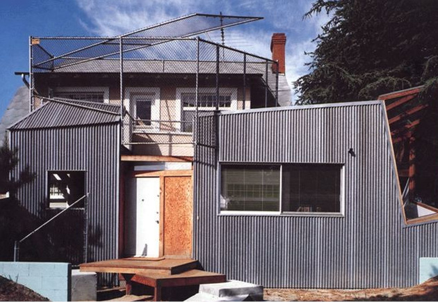 У дома были и свои художественные прототипы. Огромная скульптура – бесконечная колонна – Курта Швиттерса, «поэта мусорного искусства», созданная им в собственном доме, инсталляции Роберта Раушенберга и художников Лос-Анжелеса – все это были пространственные скульптурные композиции, которые можно сделать из найденных объектов. Для Гери в ассамбляже и «мусорном искусстве» заключался особый ключ к пониманию Лос-Анджелеса. Большая часть застройки города была сделана из дешевых материалов, поскольку строящиеся дома воспринимались как временные постройки. Но даже в тех районах, где находились дорогие виллы, обязательно присутствовала сетка-рабица. Забором из сетки-рабицы были огорожены теннисный корт и бассейн, демонстрировавшие претензии на роскошь, заключенную в рамки дешевой промышленной продукции. Бесконечный микс дешевых и дорогих материалов создавал урбанистический ассамбляж и специфическую текстуру Лос-Анджелеса, что и попытался воплотить Гери в своем собственном доме.