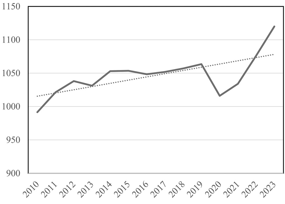 Устойчивая тенденция увеличения энергопотребления в стране, с небольшими колебаниями, обусловленными кризисными явлениями, такими как пандемия COVID-19, продолжается, несмотря на цикличность и краткосрочные спады (рис. 1), что подчеркивает важность решения проблемы энергоэффективности и перехода к энергоэффективному потреблению в том числе и городского хозяйства. Современные подходы к проектированию жилых кварталов требуют интеграции инновационных технологий и методик, которые обеспечивают более рациональное использование энергоресурсов.