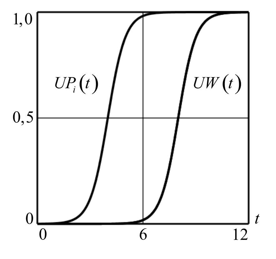 Если же на некотором интервале функции и принимают значения близкие к единице, то на этом временном интервале внедрение продуктовых и процессных технологических инноваций в производственную деятельность предприятия практически полностью завершено.