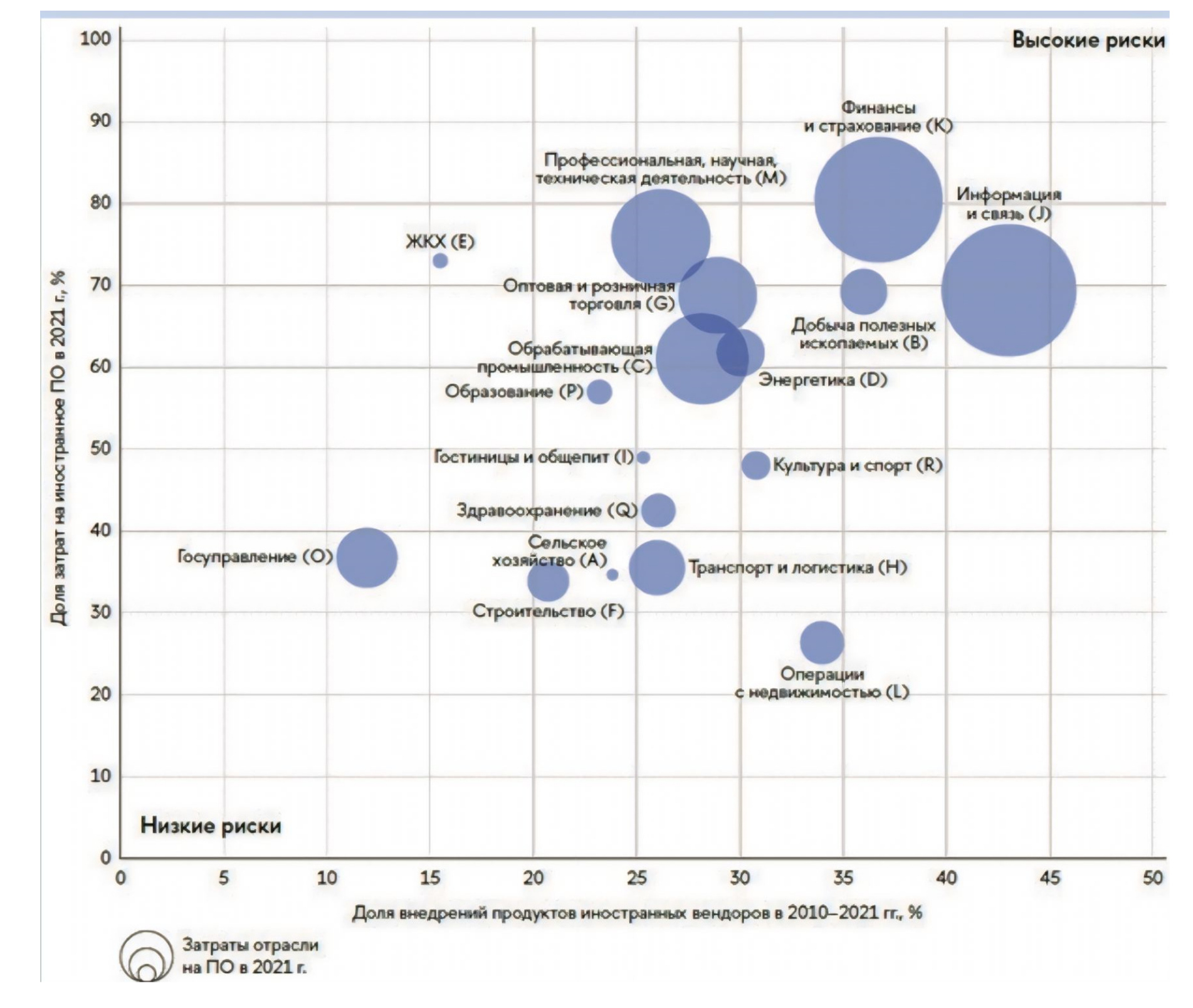Рисунок 2: Риски зависимости от иностранных вендоров ПО по отраслям [1]