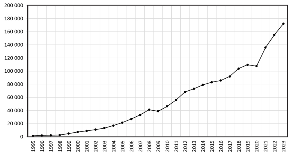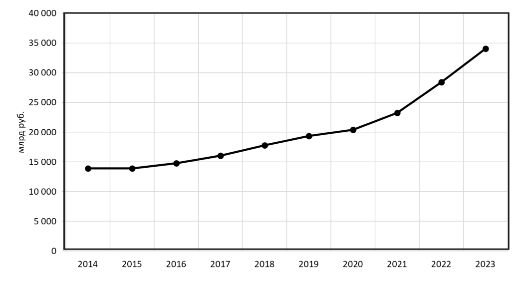 Fig. 4: Dynamics of GDP of the Russian Federation for the period 1995–2023.