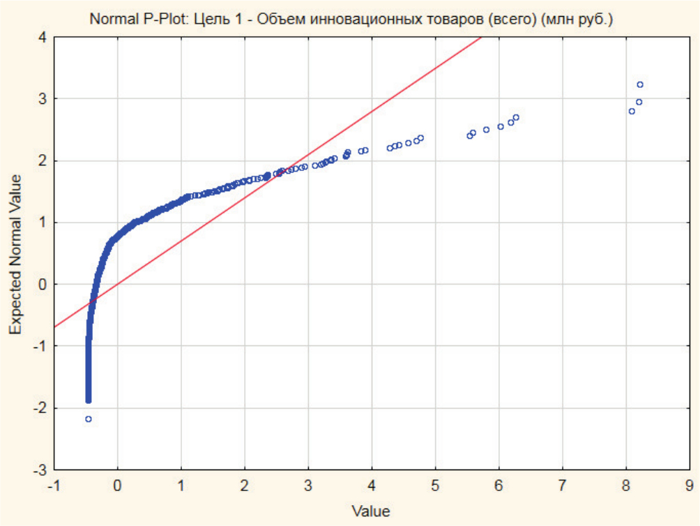 - цель 1 – объем инновационных товаров (всего) (млн руб.) (y1);