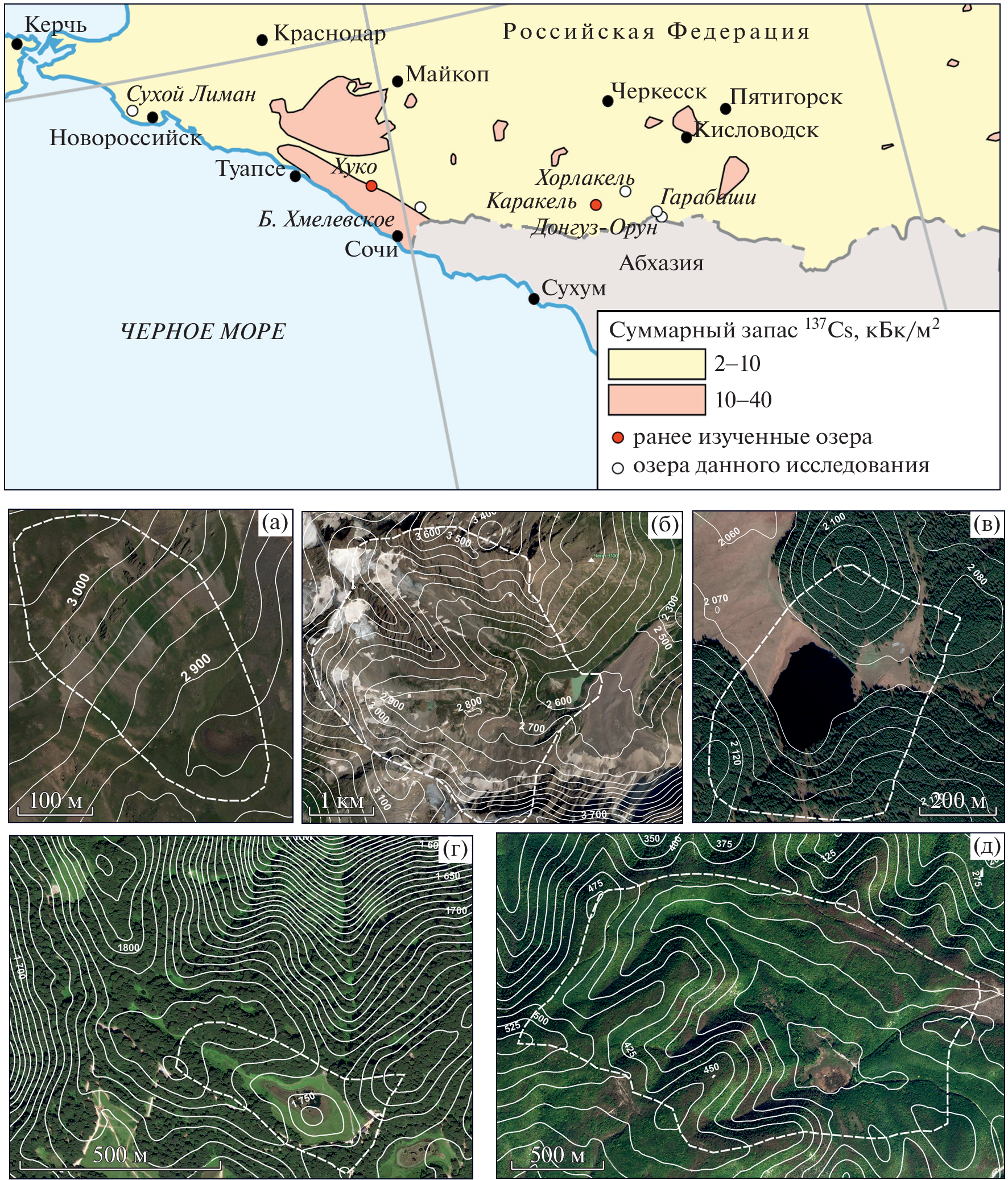 Исследованы темпы осадконакопления пяти озер Западного и Центрального Кавказа в позднем голоцене на основе радиоизотопного датирования (137Cs глобального и Чернобыльского происхождения, 210Pbex, 14C). Озера расположены в различных ландшафтных зонах и отличаются по своему происхождению. Водосборы исследованных озер минимально подвержены антропогенному воздействию, поэтому поступление наносов в водоем, скорости осадконакопления и их изменения во времени контролируются в основном природными факторами. Установлено, что для двух озер среднегорной зоны и зоны с залуженными и залесeнными водосборами, современные скорости накопления отложений составляют 0.05–0.07 см/год, из которых практически половину составляют органические остатки. Скорости осадконакопления в высокогорном оз. Донгуз-Орун имеют тенденцию к росту и составляют в последние 30 лет 0.32 см/год без учета значительного объема наносов, которые переоткладываются в дельте перед водоемом. Противоположенный тренд скоростей осадконакопления выявлен для высокогорного оз. Гарабаши, отличительной особенностью которого является отсутствие в настоящее время ледников на его водосборе и достаточно высокое проективное покрытие водосбора растительностью. Скорости осадконакопления в оз. Сухой Лиман, расположенном в низкогорной зоне, составляют 0.1 см/год с трендом небольшого роста, обусловленным некоторым увеличением антропогенного воздействия, связанном с локальными вырубками и ростом рекреационной нагрузки.