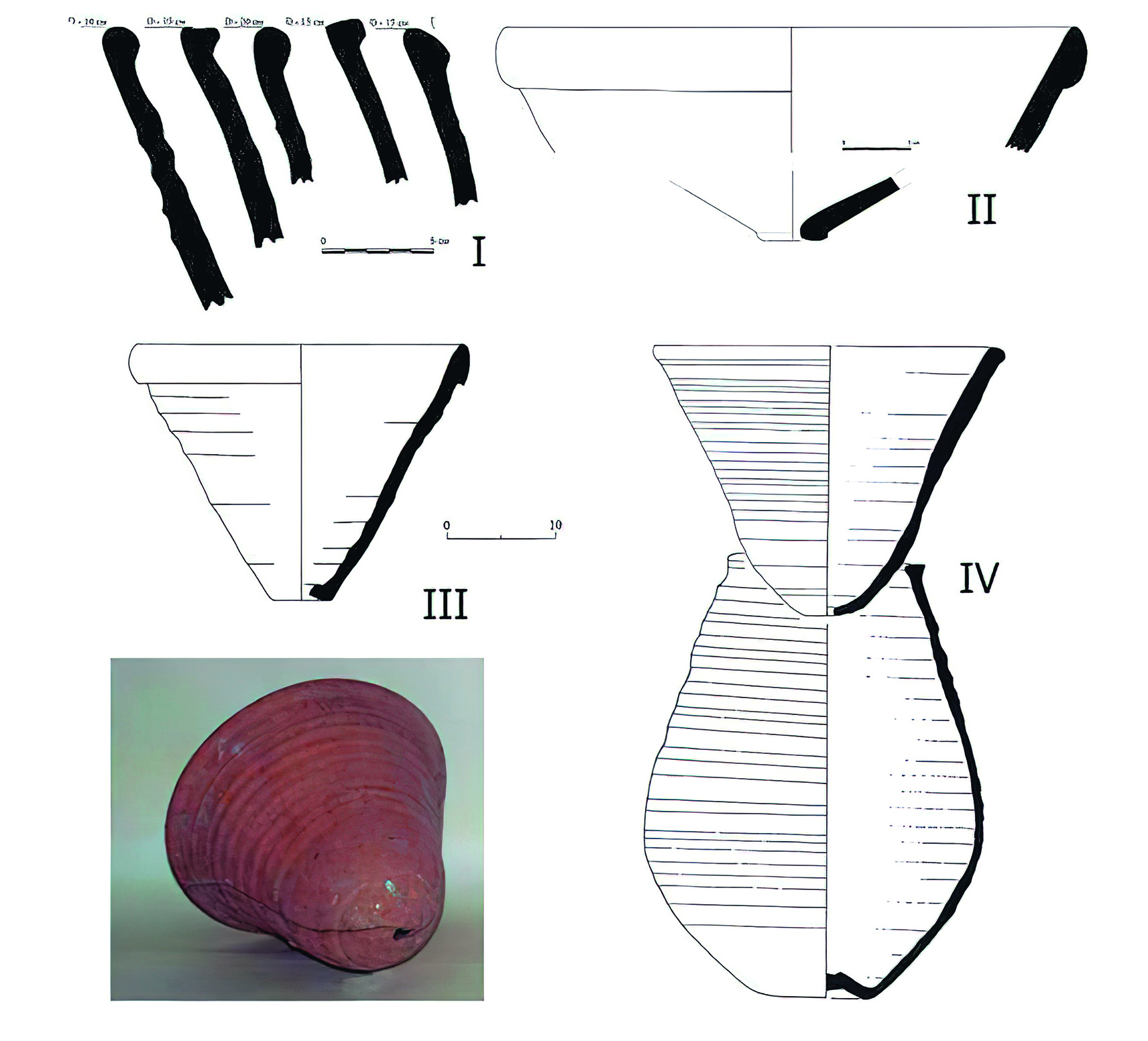 Выводы. Анализ керамического комплекса в целом, а также керамики, найденной в различных локусах и слоях на исследуемом участке, позволил выделить несколько этапов его использования.