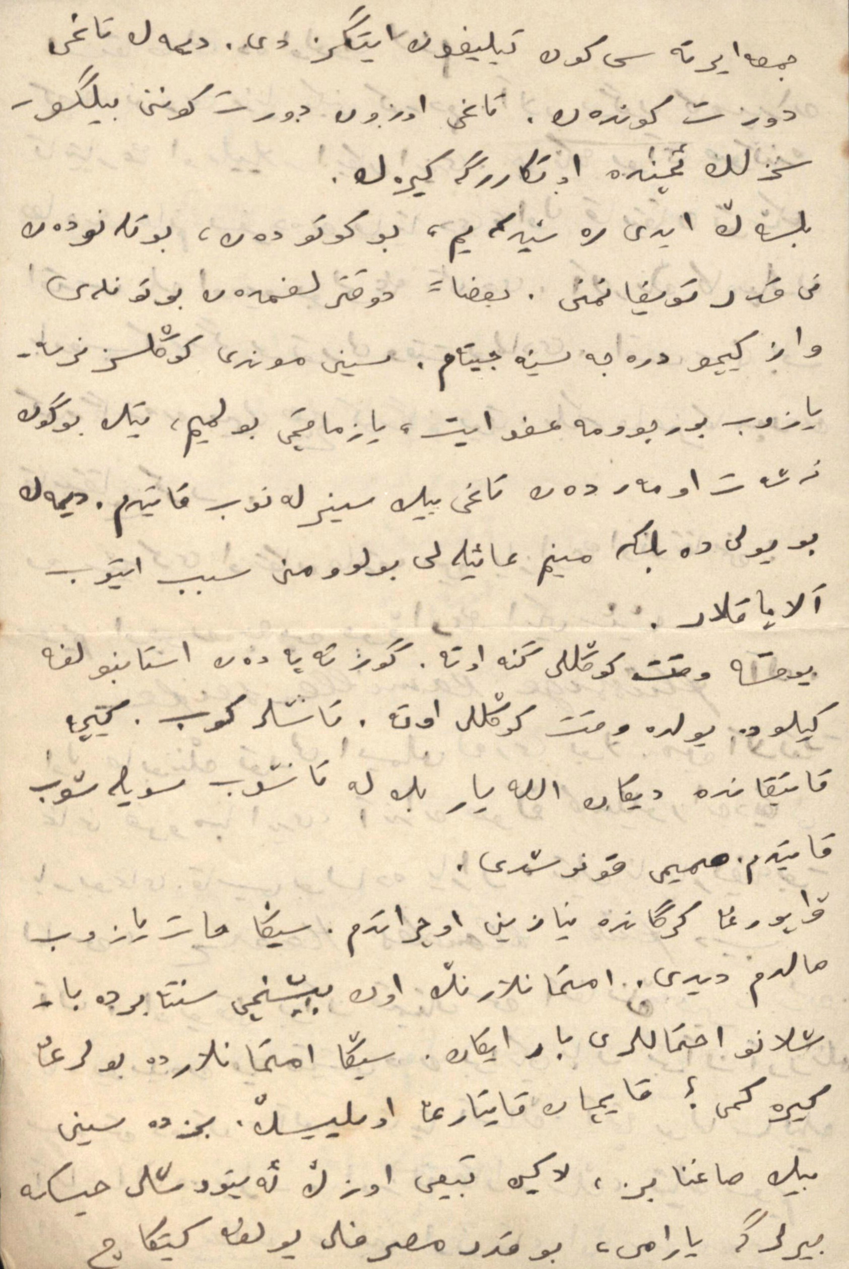 [...] Шуның белән бүгенгә тәмам итәм. Пароходка китәргә вакыт җитеп бара. Һәр көн өйдә дүрт-биш сәгать булам. Авырулар бик күп түгел әле, алай да бераз бар.