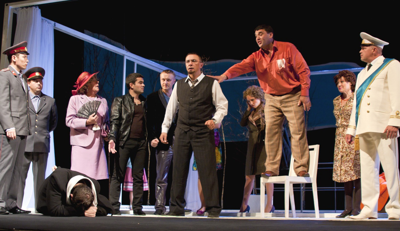 Театр драмы и комедии им. К.Тинчурина. «Господин де Пурсоньяк» (1999, реж. Р.Загидуллин). Сцена из спектакля.