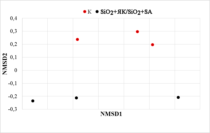 Note: К – сontrol, SiO2+ЯК/ SiO2+SA – experiment