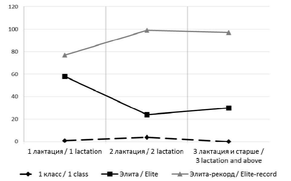 Наличие общего генеалогического корня у чёрно-пёстрой и голштинской пород свидетельствует об их родственном происхождении. Классовое распределение дойных животных представлено на рисунке 1.