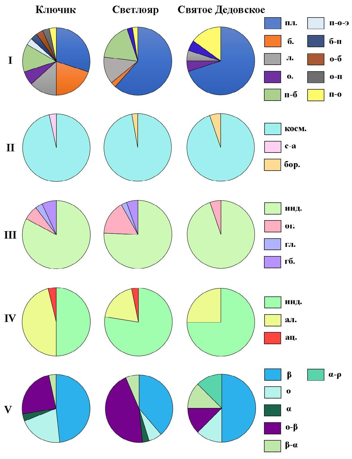 II – косм. – космополиты, с-а – северо-альпийские, бор. – бореальные;