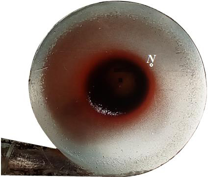 Fig. 10. Visualization of the flow separation region through the optically transparent solid end wall of the vortex chamber
