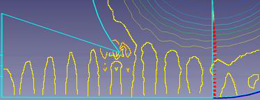 Периодическое обжатие входного потока окружным, создающее периодическую структуру последующего течения, обуславливает чередующиеся области повышенного и пониженного давлений с последующим взаимодействием фронтов повышенных давлений и периодической сменой знака давлений в этих областях (рис. 9).
