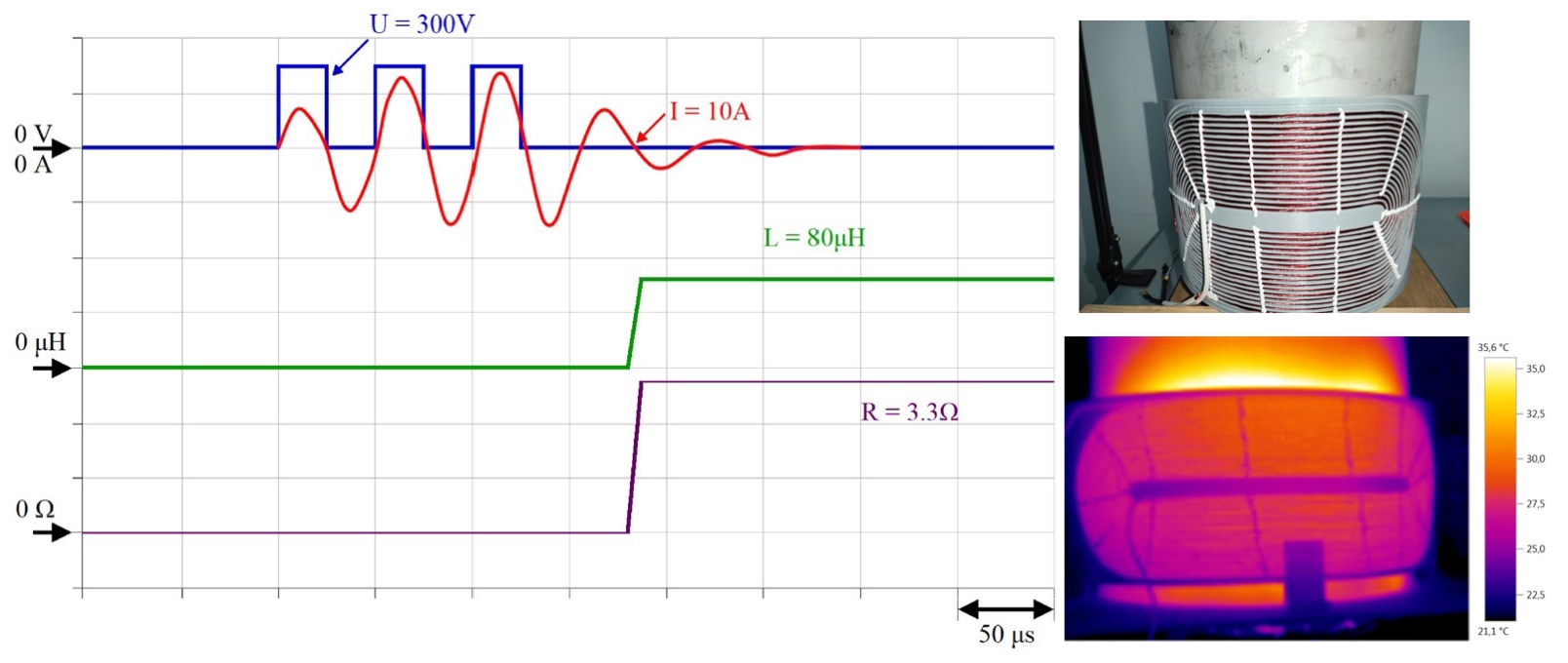 Fig.4. Results of testing the operation of a pasteurizer with induction heating at optimal values of the main quantities U, R, L and I