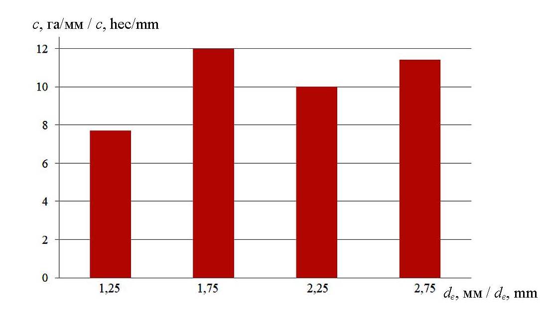 1 – de = 1,25 mm; 2 – de = 1,75 mm; 3 – de = 2,25 mm; 4 – de= 2,75 mm