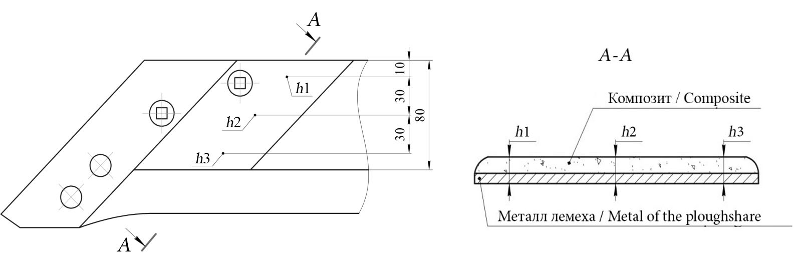 Лемехи, восстановленные методом ТКЭ, имеют меньшую износостойкость и, соответственно, меньший ресурс по сравнению с новыми. Одним из ключевых преимуществ данной конструкции является ее способность предотвращать образование лучевидного износа, что повышает эффективность работы лемеха при вспашке абразивных почв, таких как супесь. Хотя повышение твердости до 53 HRC существенно повышает износостойкость [27; 28], широкое внедрение этой технологии ограничено из-за дополнительных затрат, необходимых для реализации термической обработки. Нельзя также не упомянуть о возможности разрушения детали под воздействием ударных нагрузок, возникающих в процессе эксплуатации.