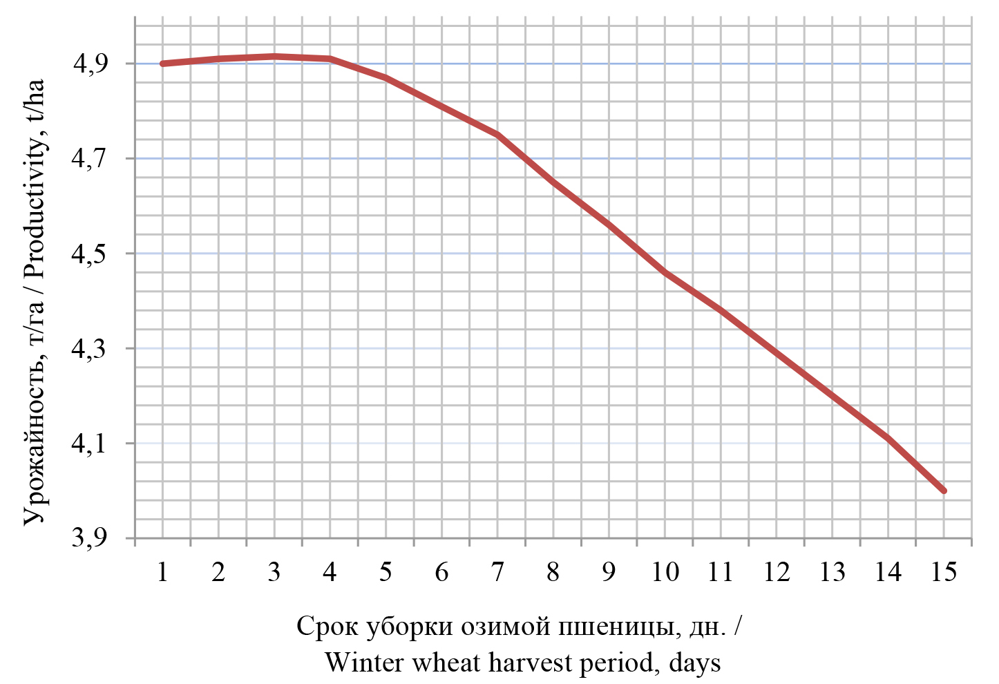 F i g. 1. Dependence of winter wheat yield on harvesting time