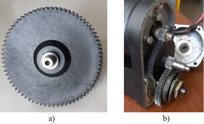 а) зубчатое колесо, произведенное методом 3D-печати; b) редуктор привода в сборе