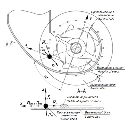 Pпр – suction force, N; N – normal reaction acting on the seed from the sowing disc, N;