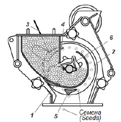 3 – vault destroyer; 4 – “extra” seed remover; 5 – agitator of seeds; 6 – dropping-guiding device