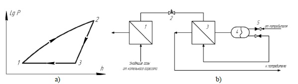 На основании предложенного термодинамического цикла была разработана принципиальная схема прототипа теплоутилизатора (рис. 1b).