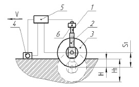 2 – electric cylinder; 3 – rolling working body; 4 – soil density sensor; 5 – microcontroller;