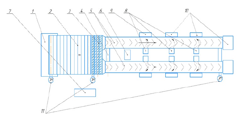 crops, potatoes and onion bulbs: 1 – microcontroller Arduino Mega 2560; 2 – power supply unit;