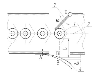 Fig. 4. Scheme of changing the vertical movement of the rolling-down working tools of the planting machine: 1 – electric cylinder rod;