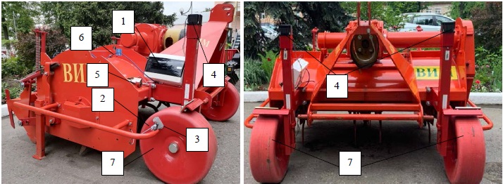 1 – wheel of the power plant; 2 – support wheel of the tillage machine;