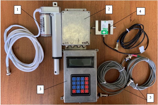 3 – датчик лазерный; 4 – электроцилиндр; 5 – устройство навесное