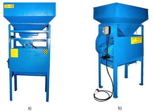 Fig. 5. General view: a) PZ-1M grain flattener with a feeding device;