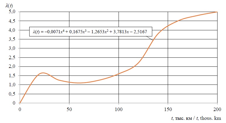 Рис. 2. Изменение интенсивности отказов λ(t) регулятора давления топлива по наработке