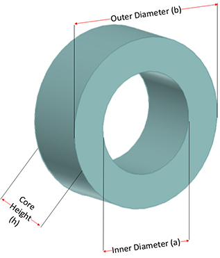 Toroidal cores have dimensional variables, such as inner diameter, outer diameter, and height, as seen in Figure 3. These variables are of vital importance in terms of the energy obtained by the harvester. Indeed, the amount of harvested energy varies depending on these geometric variables.