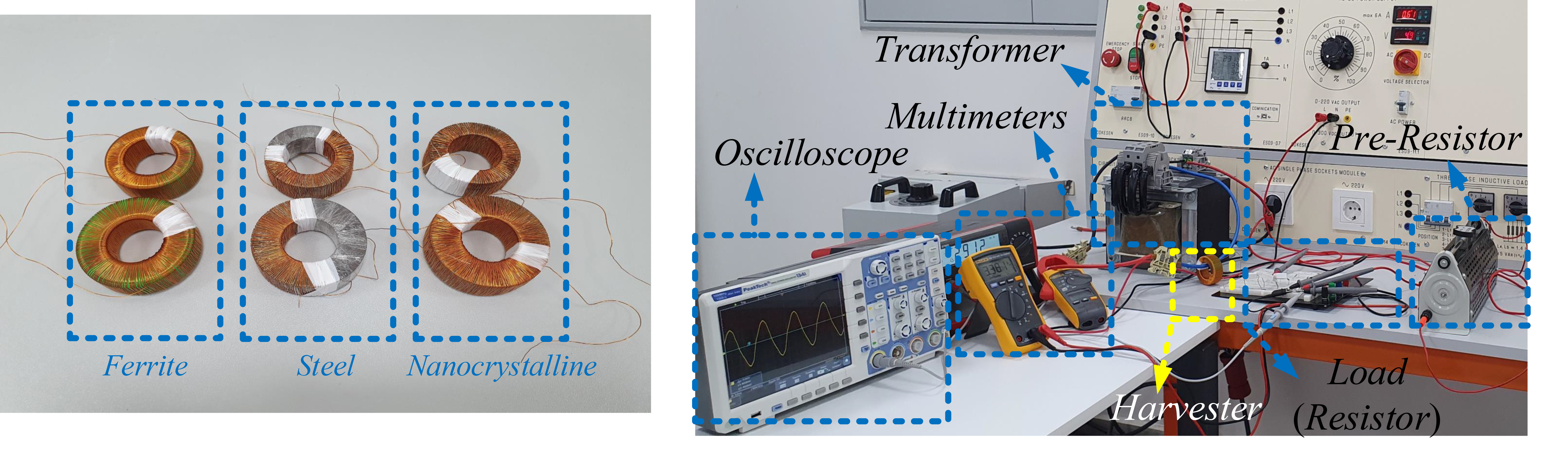 Results. Among the selected materials and under the specified line conditions, current of 0‒30 A and a frequency of 50 Hz, the highest power of 695.516 mW was harvested by the 60x30x20 sized ferrite core harvester at a line current of 30 A.